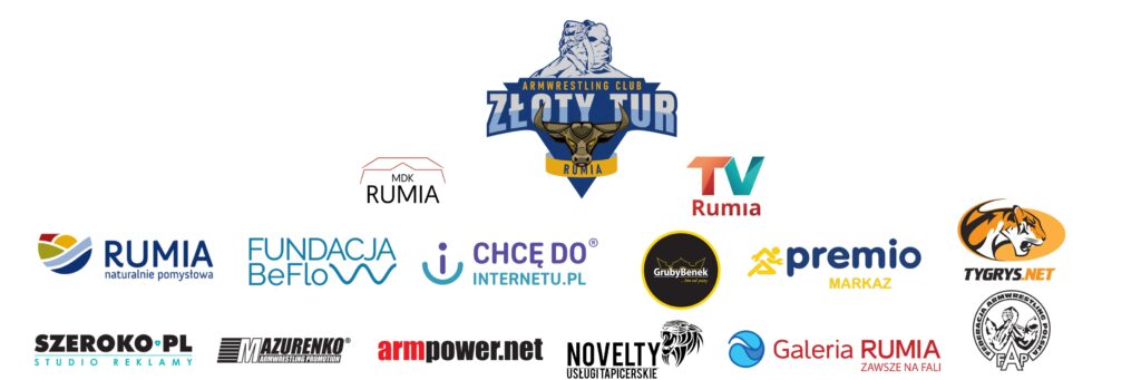 Miasto Rumia, Fundacja BeFlow, CHCE DO INTERNETU.PL, Gruby Benek, Premio Markaz, Tygrys.net, Galeria Rumia, Mazurenko Armwrestling Promotion, armwrestling.pl, Szeroko.pl Studio Reklamy, Novelty Usługi Tapicerskie oraz TV Rumia – patron medialny.